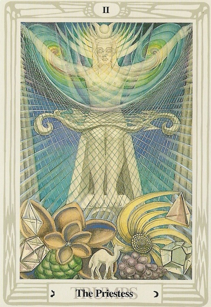 The Priestess is a creation of the lunar wisdoms. She reigns in the area of intuition and the subconscious, by way of fertile and creative imagination and dreams. The Priestess tells us to look to our subconscious, to connect to the Jungian interpretation of the Universal Unconscious. Seek out the wisdom that lurks beneath our conscious surface, tap into the knowledge that can be found there; she gives us intuition, a powerful force that can protect us, can allow us to see beyond the obvious. She is that little voice that confirms our suspicions. How many times have we face palmed because we heard that inner voice and chose to ignore it? That voice was the creation of the Priestess, her arm around your shoulder, whispering in your ear that you may not be making the best decision…or conversely, that you are right on the money.