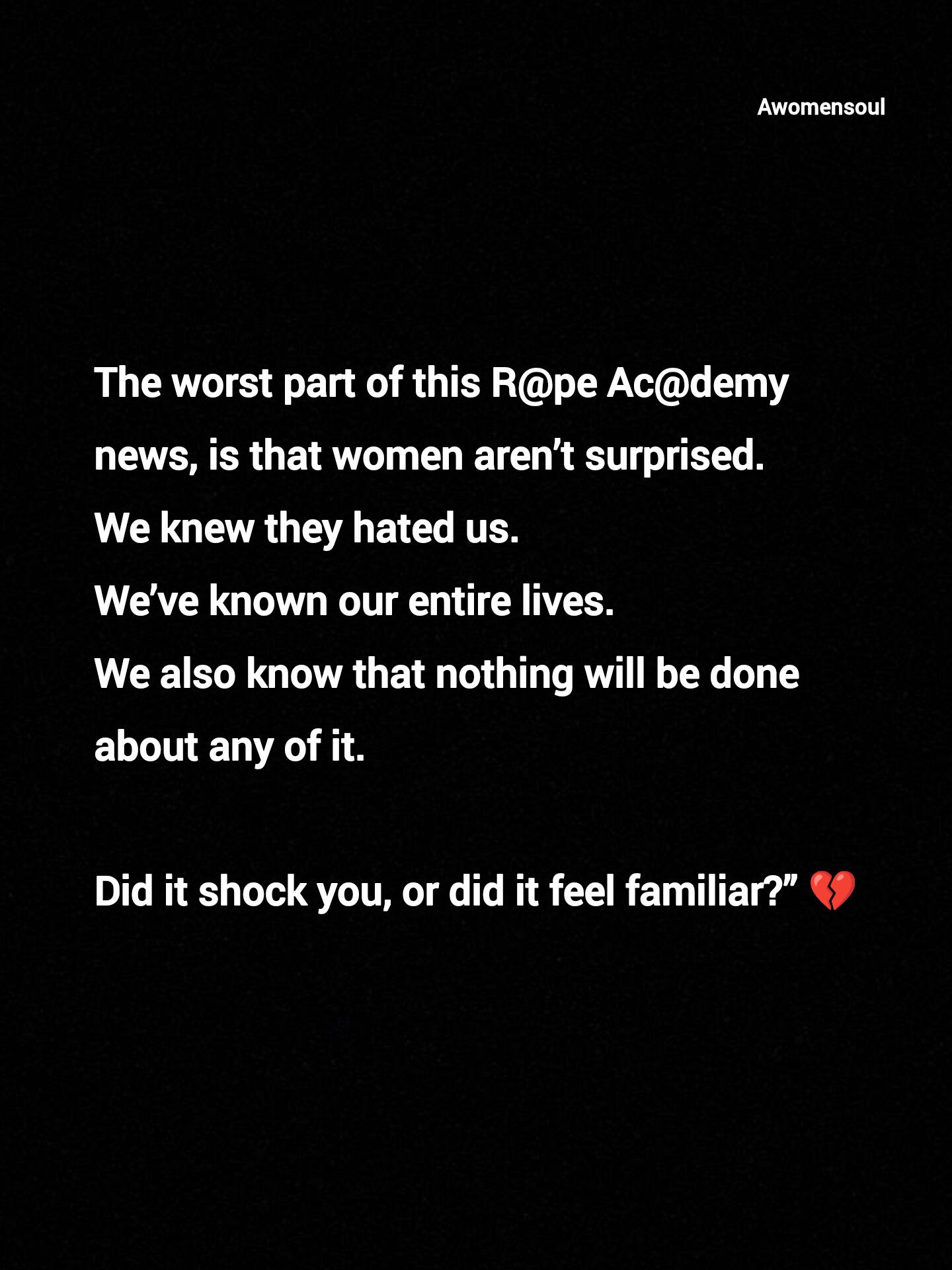 These “men” and that noun is being used in the most loose of terms as they aren’t men, are the same group of predators that tell us, that as women, we NEED them as protectors. Do you see the problem with that?