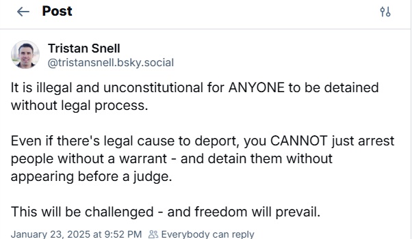 I understand Tristan’s sentiments and his belief that arrests cannot be made without warrant but it is happening. There will be no recourse in a court of law. No such thing as “Innocent until proven guilty”.