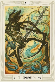 Aeon actually has a few meaning but the Thoth deck foundation lies at the feet of Aleister Crowley. Aeon is a period of time in his interpretation; for example, he believed we are in the Aeon or Age of Horus. (A very long discussion and should receive treatment of its own, so I won’t go into it any further.)